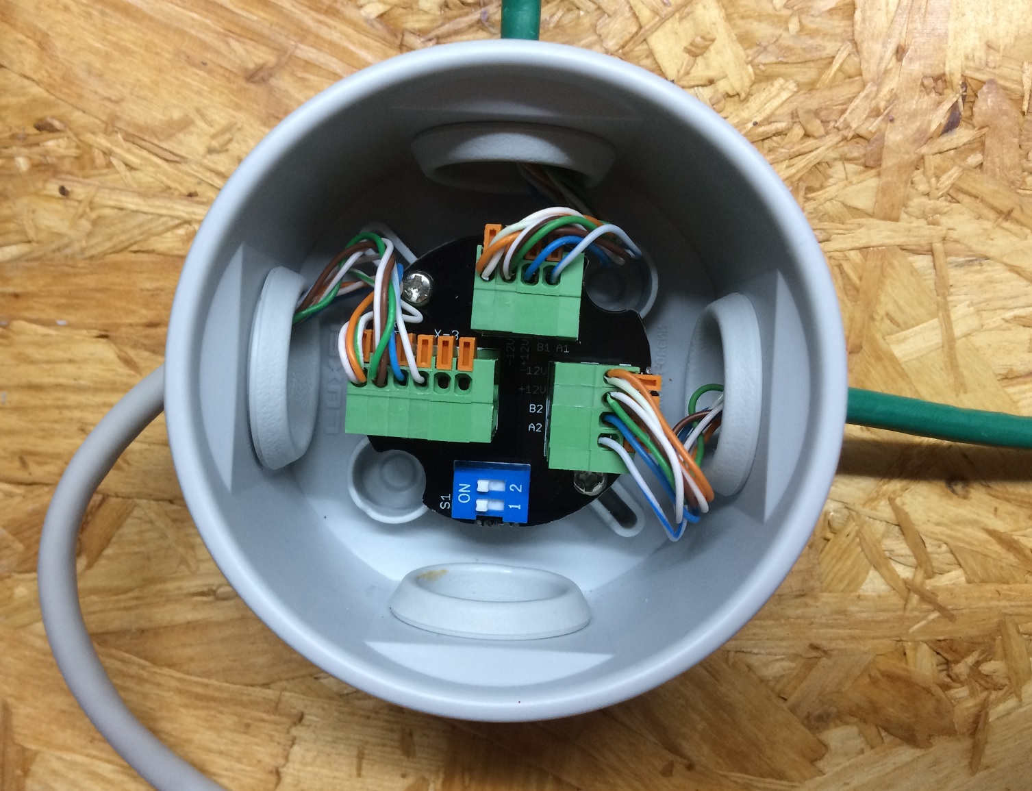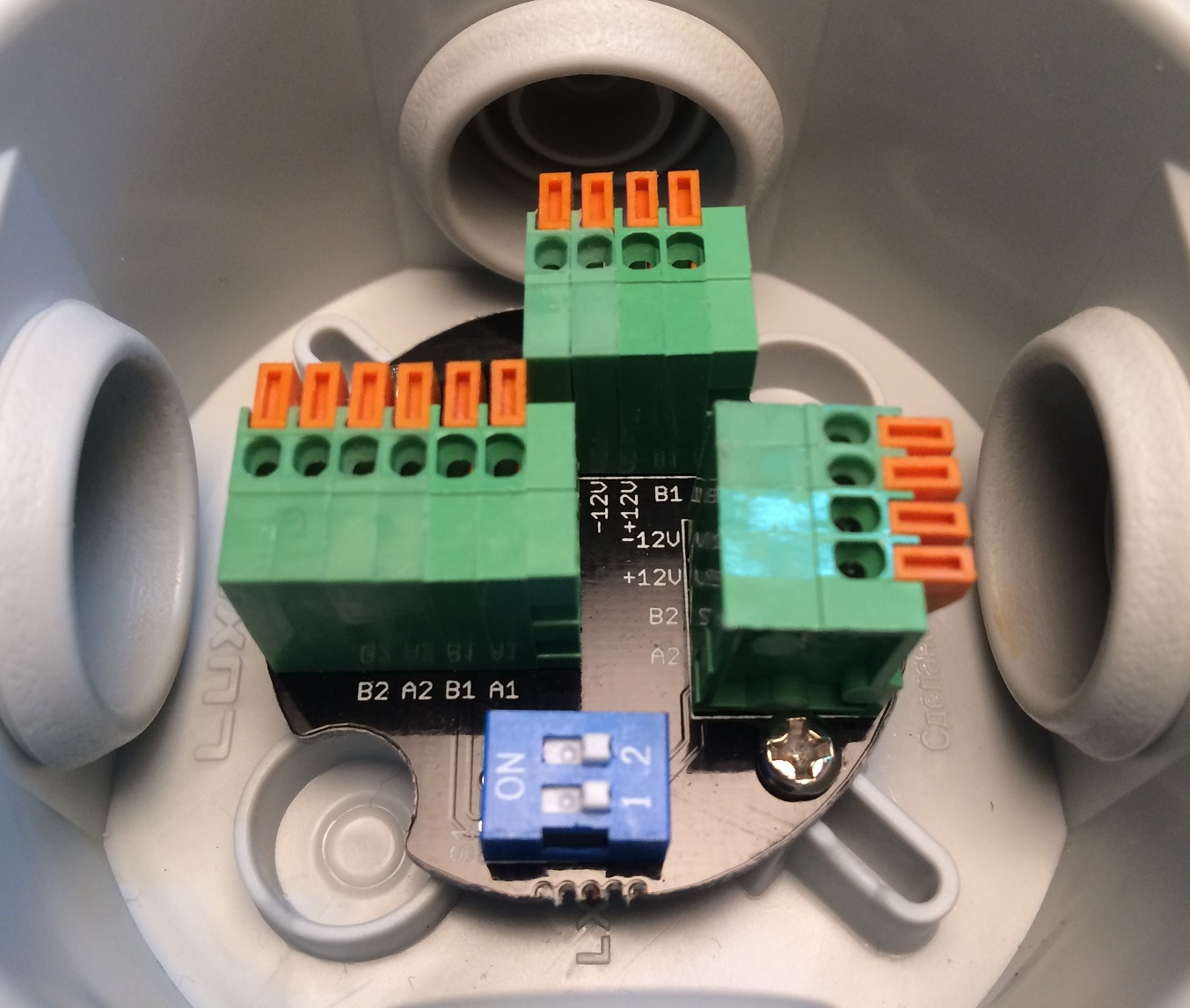 Надежные пружинные клеммники позволяют легко соединить в зажиме стандартные жилы провода utp